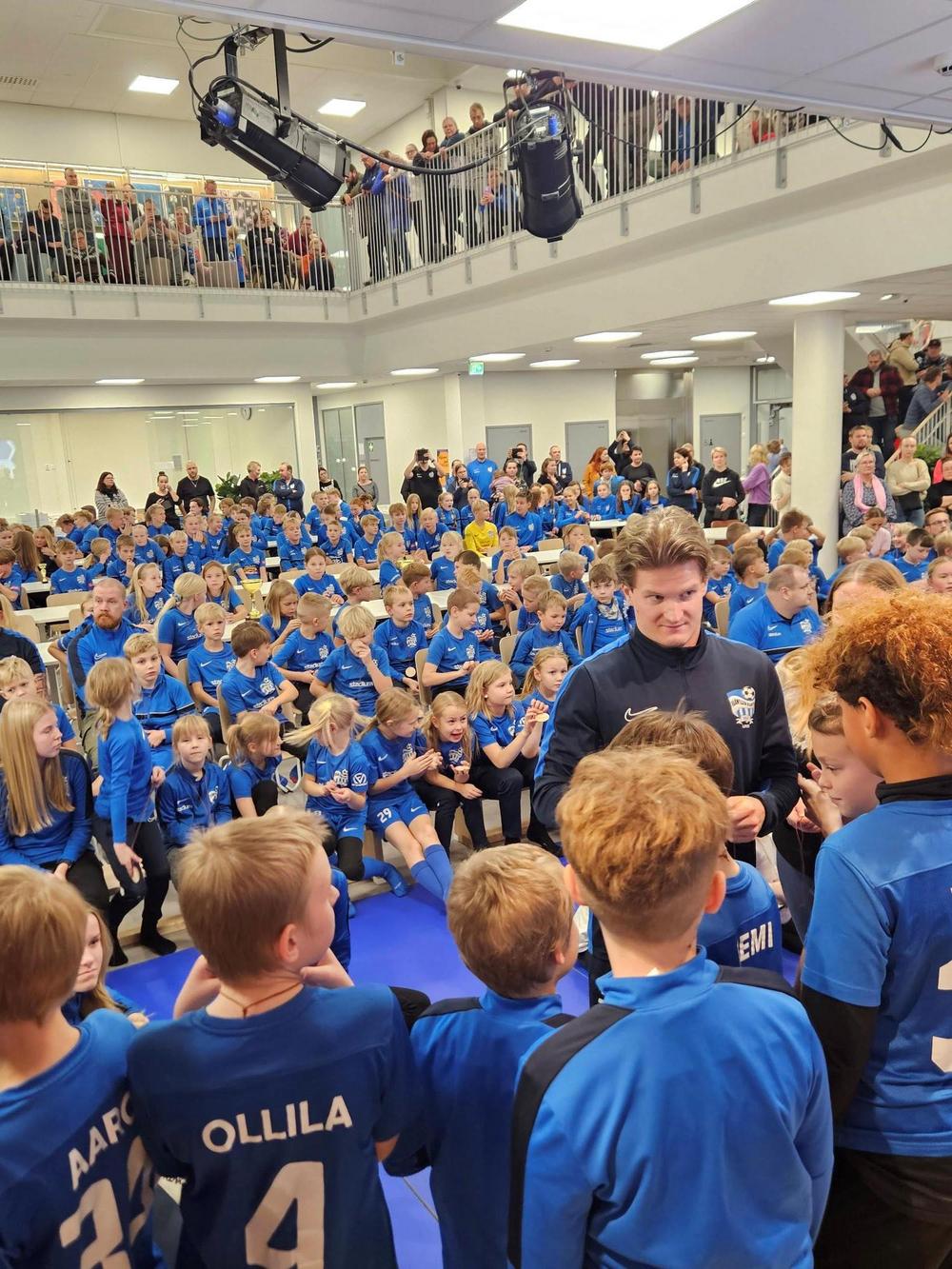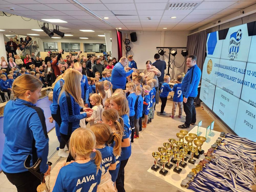 Ylämyllyn yläkoulun aula pursui sadoista sinipaitaisista pelureista perheineen maanantaina, kun koko seuraväki oli kutsuttu juhlimaan futsal-talvea ja futis-kesää. Joukkueiden kaudesta kertoivat sadat kuvat, jotka oli heijastettu jättinäytölle.