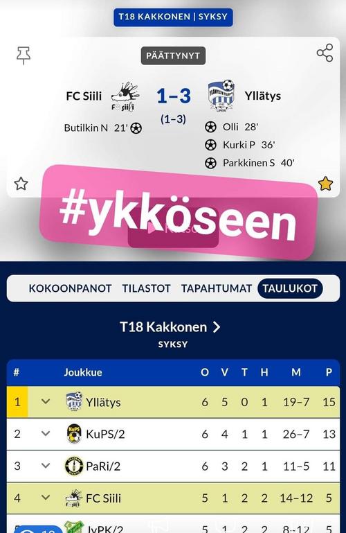 Yllätys sälytti vitosen piikkipaikkansa voittamalla viime perjantaina edellisessä ottelussaan nousijasuosikki WJK:n Varkaudessa maalein 0-3 (0-1). Seuraavana päivänä KiuPan voitettua JuPy:n varmistui Yllätyksen nousu Neloseen. Kaikilla joukkueilla, sarjan viimeiseksi jäävää PuPaa lukuunottamatta, on enää yksi ottelu jäljellä, ja vaikka KiuPa nousisi Yllätyksen kanssa tasapisteisiin, jää se sarjataulukossa Yllätyksen taakse keskinäisen ottelun perusteella (Yllätys - KiuPa 2-0).